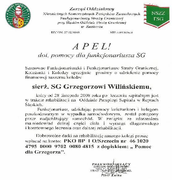 Zamieszczam na prośbę kolegi, oficera Straży Granicznej.
