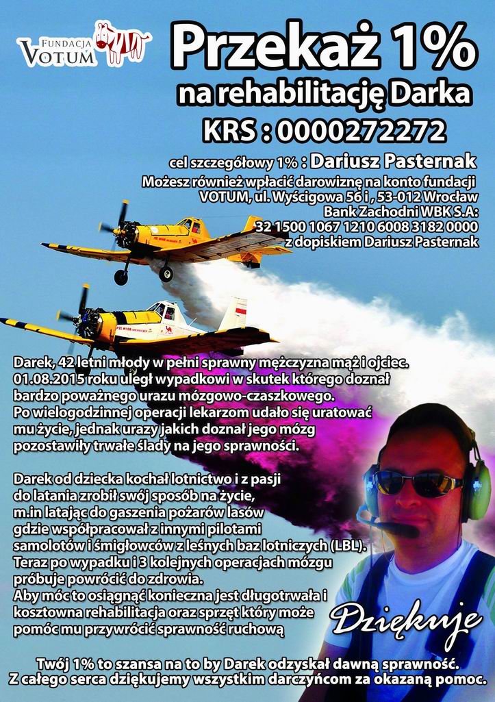 Można również wpłacić darowiznę na konto fundacji VOTUM w której Darek jest zgłoszony,