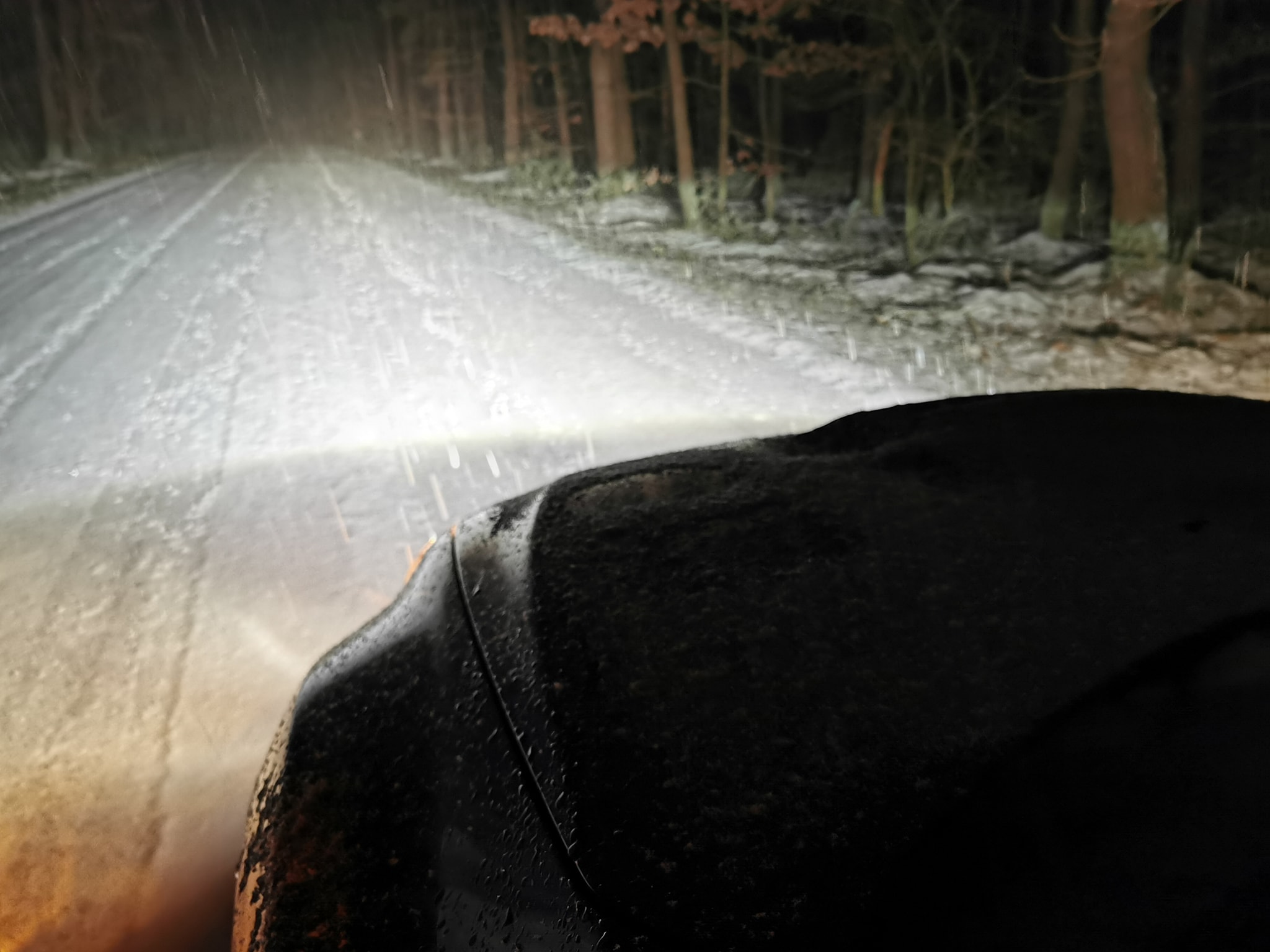 Niestety pierwszy śnieg stopniał i zamarzł i miejscami jest ciut ślisko, ale rozprostowałem dyferki