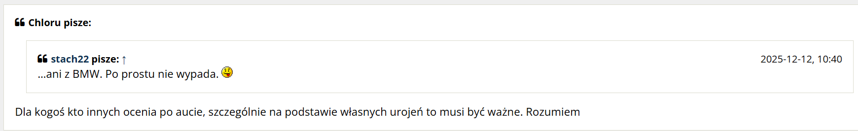 Zaparz sobie melisski bo Ci się rączki trzęsą i cytowanie zawodzi. Ale oprawię sobie w ramkę jak sam napisałeś, że z BMW nie wypada.