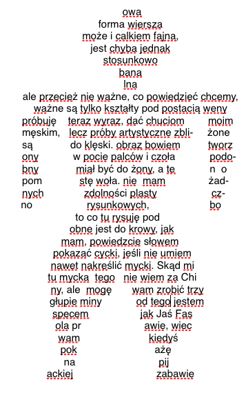 Jak widze poezja powazna, czy zaangazowana nie wzbudza entuzjazmu tworczego lub krytycznego, w zwiazku z tym sugeruje przeczytac wierszyk dowcipny.