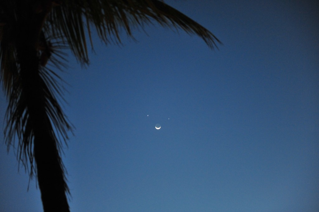 Zdaje się, że to Księżyc w towarzystwie Jowisza i Wenus, a z tamtej akurat perspektywy, ułożyły się w "buźkę". Uznałem, że to fajne "pozdrowienia z wakacji"...