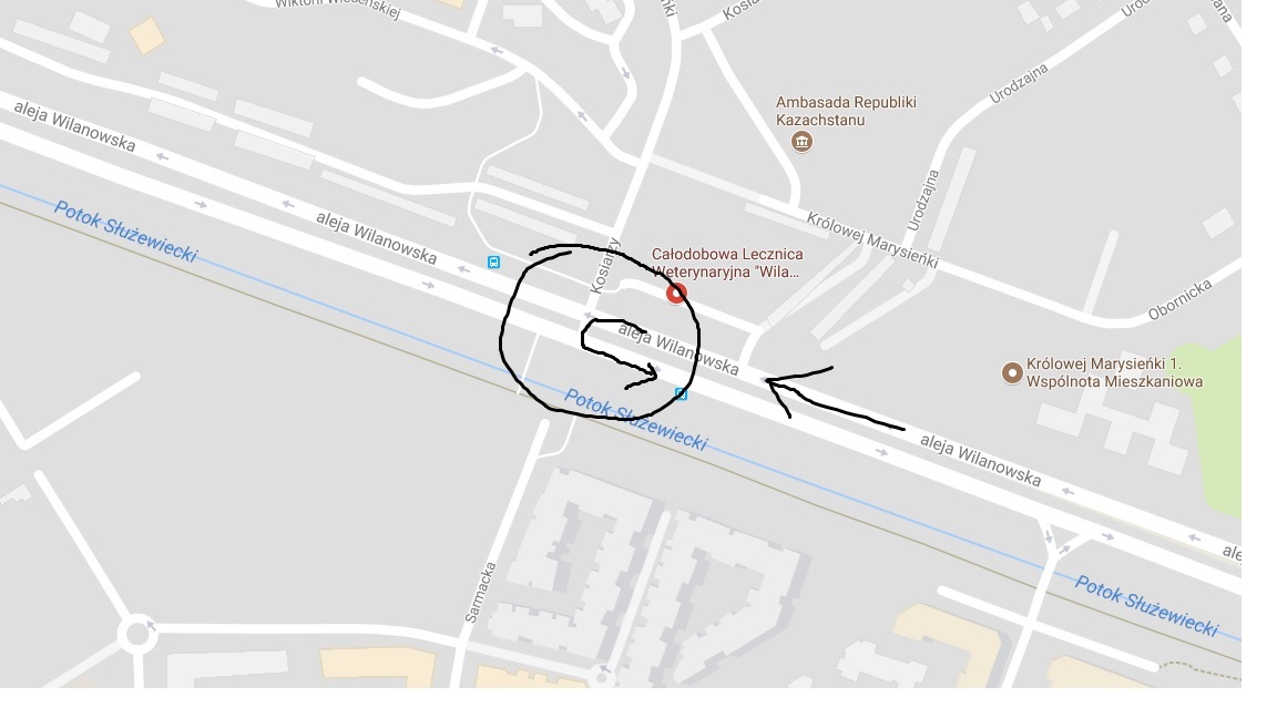 O! Tego wątku szukałem. Męczy mnie od dłuższego czasu jedna rzecz. Jest sobie w Warszawie (Wilanów) skrzyżowanie, mapka poglądowa poniżej. Są światła, a oznakowanie pionowe i poziome jak na załączonych zrzutach z google maps.