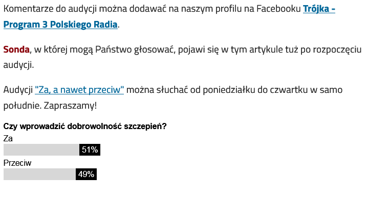 Słuchałem w PR3 audycji "za a nawet" przeciw" na temat przymusu szczepień.