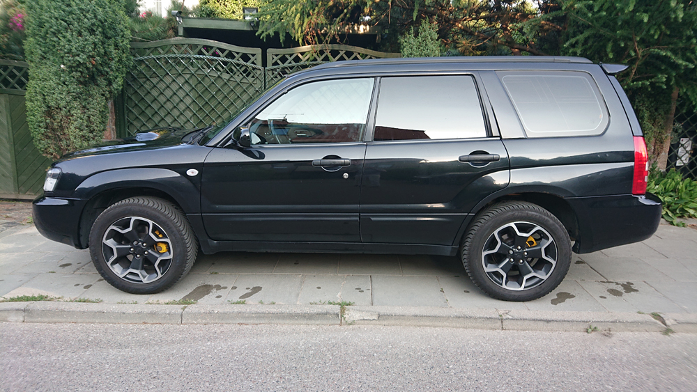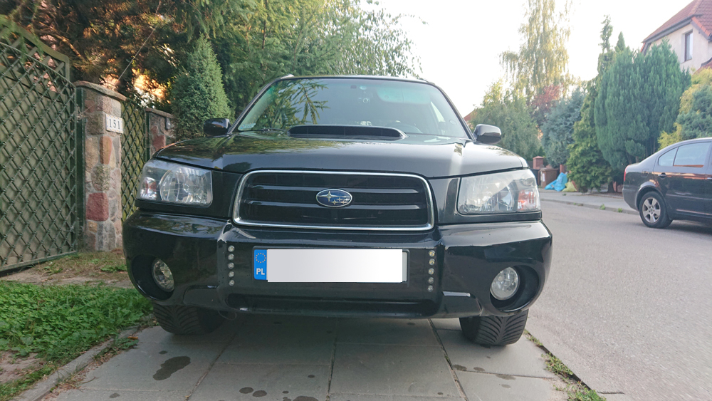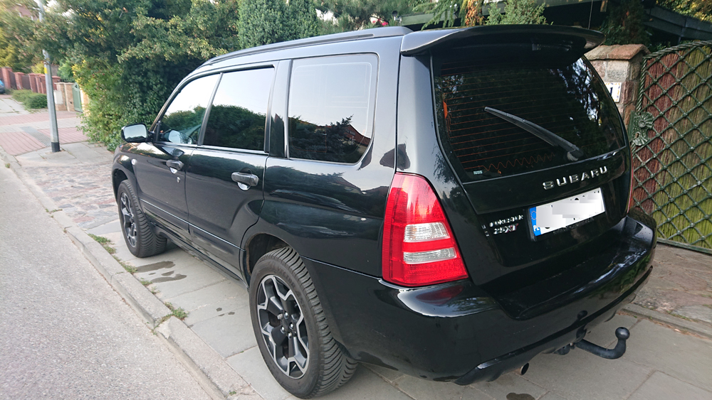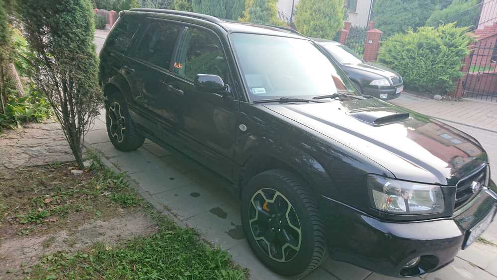 Forester XT 2.5 r. 2004, modelowo 2005, z polskiego salonu. Przygotowany na ok 400 KM, obecnie jeździ ‘cywilnie’ na mocy ok. 300 KM. Manualna skrzynia biegów. Bezwypadkowy poza przednim zderzakiem i reflektorem (info od poprzedniego właściciela). Samochód robiony dla siebie na lata użytkowania. Sprzedaż z powodu upgrade do Porsche.