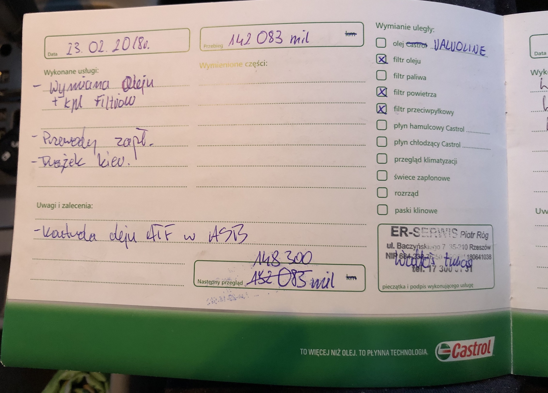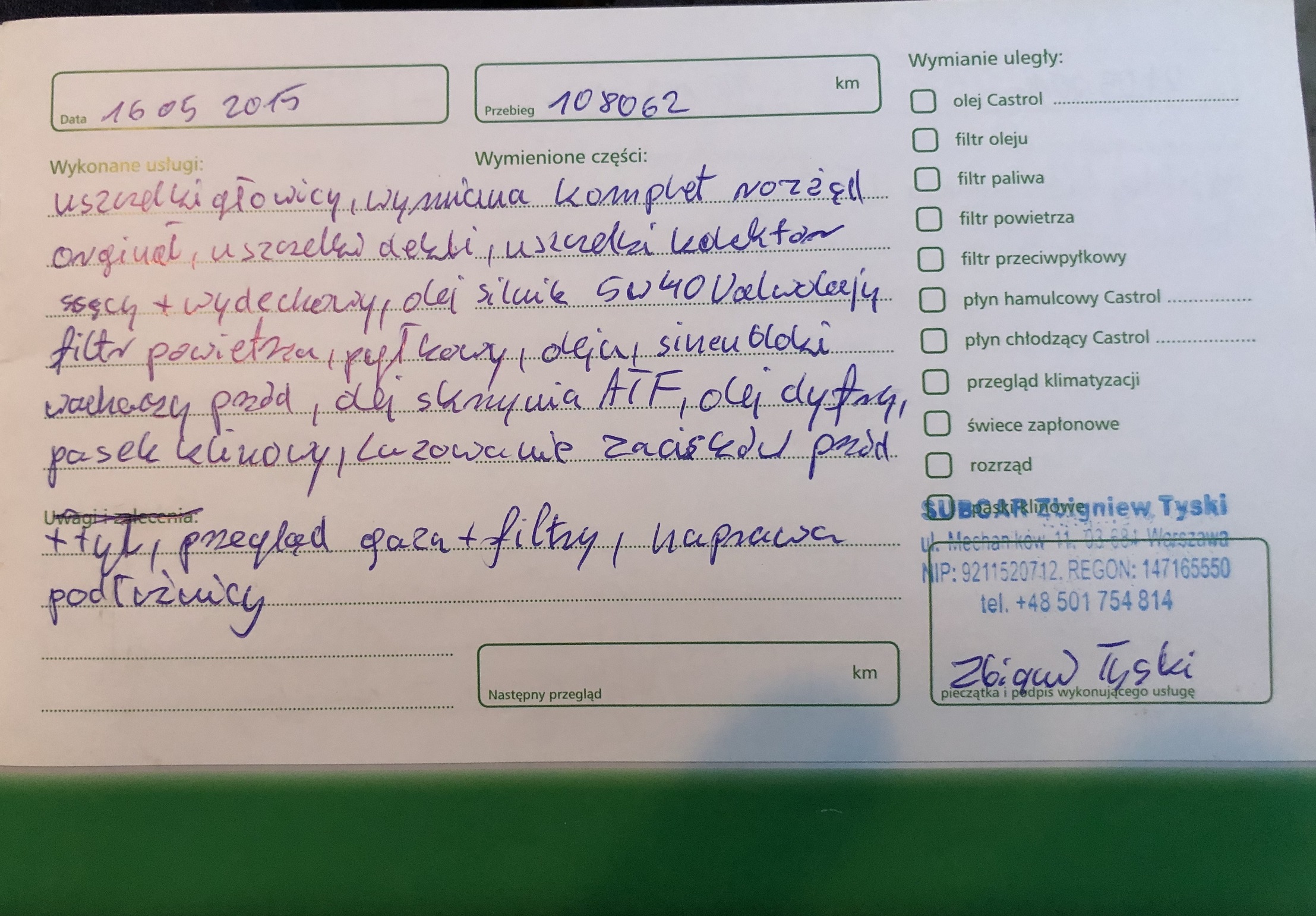 Uszczelki nie wypierdziało, rozrząd był robiony przy zakupie 108 tys mil.