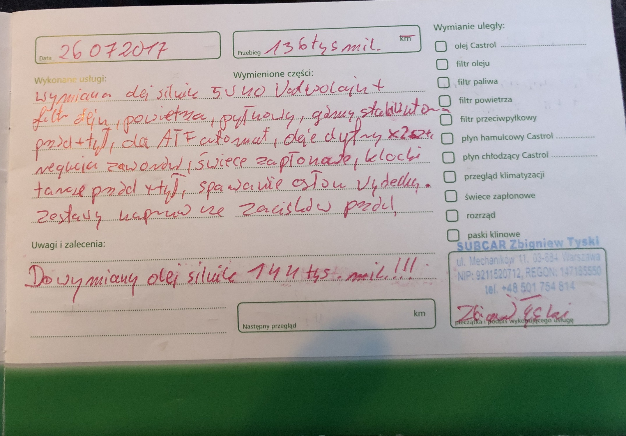 Do kiedy rozrząd, bo z gryzmołów nie widzę?