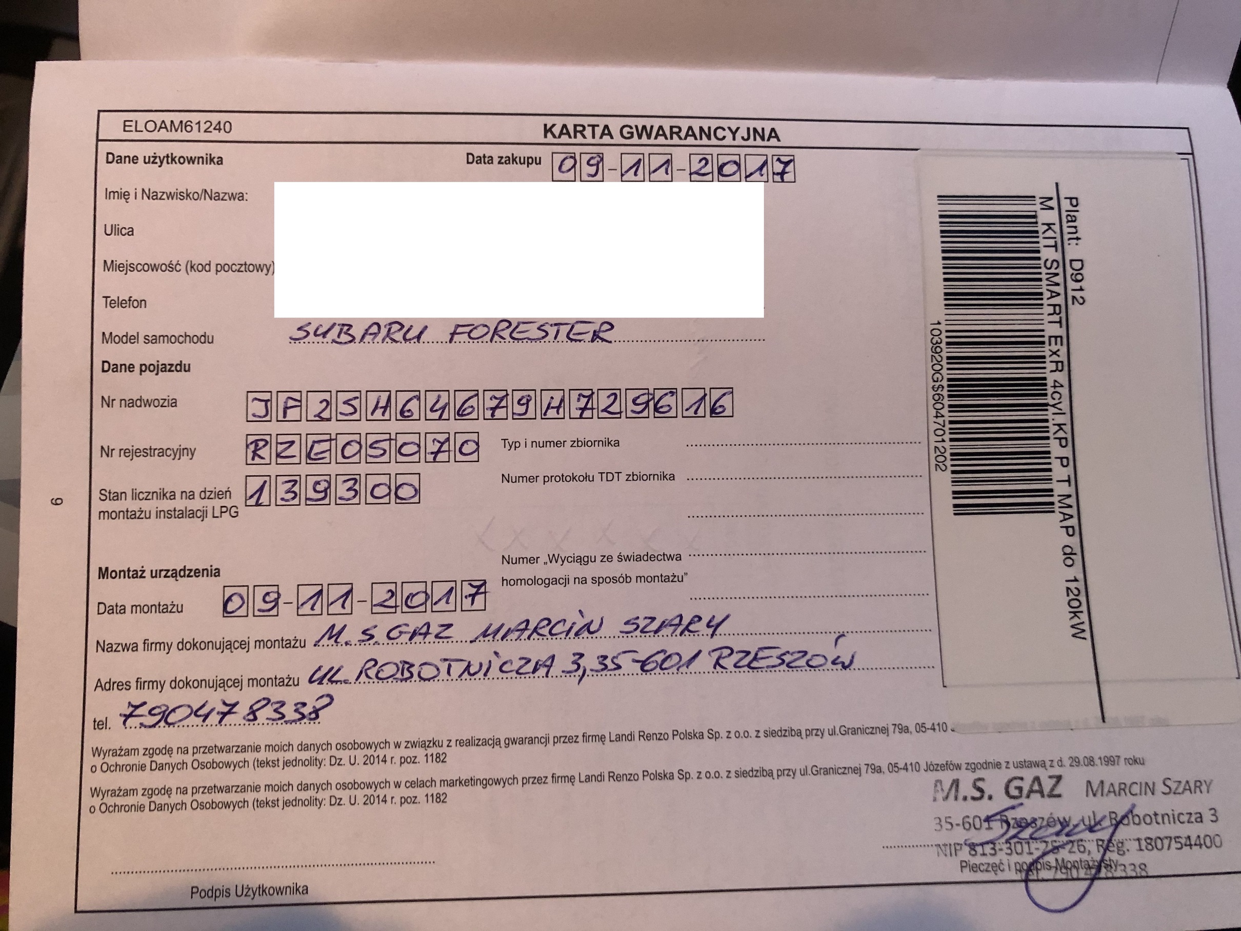 Przód instalacji gazowej wymieniany w 2017 roku, chyba na landirenzo, w przyszłym kończy się homologacja butli.