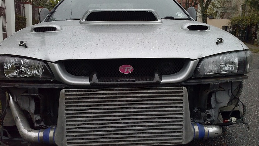 Silnik: wersja 4ta, świeżo po wymianie uszczelek pod głowicami (oryginalne subaru, najgrubsze metalowe) i po sprawdzeniu głowic docieraniu gniazd itp itd, silnik igiełka do tego nowy rozrząd i wszystkie uszczelki pod kolektorami i simeringi na wale wałkach i gdzie popadnie, wymaga jedynie wymiany uszczelek pod pokrywami zaworów gdyż xbike tak się zbiera z wysyłką, że jeszcze nie zostały wymienione (a z jednej się już troche leje)... do tego poszly nowe swieczki NGK platyny, płyn chlodzący prestone oraz olej Millersa XFS 5W50. Co do modyfikacji przy silniku to otrzymał on stożkowy filtr powietrza, duuuuży FMIC, customową aluminiową chłodnicę wody, regulator ciśnienia paliwa Tomei i... pewnie coś jeszcze o czym nie pamiętam :P zawieszenie bez luzów, oem amorki sti + żółte springi APEX. Nadwozie zdrowe, bez korozji, nie posiada jakiś śladów historii wypadkowej, do tego zderzak z wersji 5/6, zaślepka z dolotem do stożka, maska alu z dużym kurnikiem, lusterka wrc carbonowe, tylna lotka carbonowa wzorowana na wersję 6 ! Wnętrze ładne zadbane czyste, dodatkowo carbonowy daszek plus 3 dodatkowe zegary temp oleju cisnienia oleju i napięcia aku. Klima sprawna, na zimnym troche brzęczy kompresor, zapewne sprzęgiełko nie jest już 1 świeżości ;) Napęd: skrzynia 752 z DCCD, wszystko sprawne, chodzi cichutko, biegi wchodzą lekko i precyzyjnie, most R180, również bez niepokojących odgłosów, sprzęgło spiek 4ro łopatkowy, czsami lekko już uślizguje... w autku cała elektryka działa, wszystko jest sprawne, dodatkowo zamontowany jest turbo timer Blitz'a oraz Electronic Boost Controller Blitza, którym możemy jak wiadomo z kabiny sterować sobie ciśnieniem doładowania z 4 programami peak'ami i mnóstwem innych bajerów ;) Hamulce seria przód 4 tłoczki tył 2 tłoczki,tarcze nacinane, nawiercane, firmy nie pamiętam...