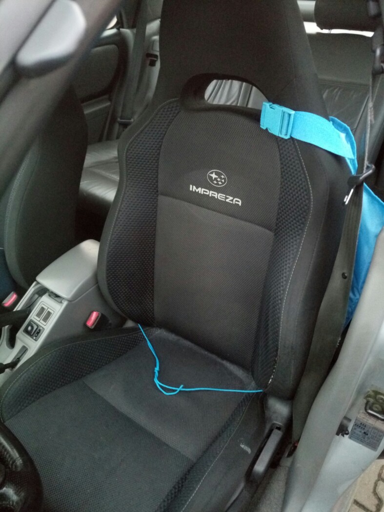 Fotele z WRX 2004, tylna kanapa z WRX 2004 nie zamontowana (dodaję ją dla chętnego), aktualnie z tyłu oryginalna skórzana kanapa.