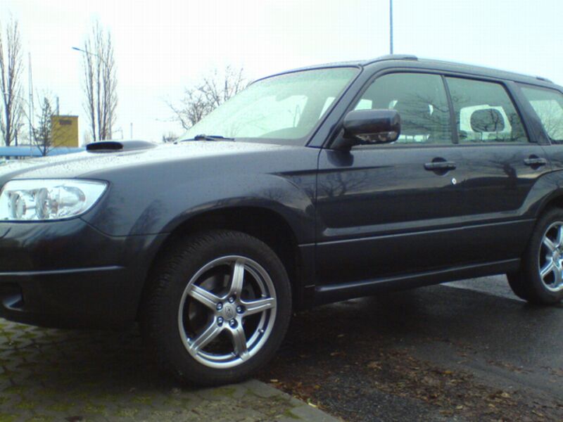 Długo szukałem drugiego kompletu felg (dla zimowych opon), które miałyby idealnie takie same parametry jak oryginalne. Wielkość felgi i rozstaw śrub nie był problemem, natomiast znaleźć taką z ET:48 ... już było trudniej! Pozostało mi wybierać między 3 wzorami, które zupełnie mi się nie podobały (nie pamiętam nazw), oryginalnymi do Forestera (trochę bez sensu i bardzo drogo) i OZ Ultraleggera (śliczne, ale wg. mnie zbyt pretensjonalne do Forysia, no i też drogo). Jeszcze wysłałem kilka próśb o oferty sprzedaży do kilku "dużych" sprzedawców i poprosiłem o to również ASO JM Auto Wrocław. Inne firmy, owszem, proponowały mi "dedykowane felgi do tego typu Forestera" ale zawsze ET był mniejszy (od 10 do 15 mm - a to daje jednak nawet o 30 mm wiekszy rozstaw kół...). No i co ... Jedynie JM Auto stanęło "na wysokości" zadania. Od dwóch tygodni maja w ofercie felgi 7Jx17" PCD:5x100 i ET:48 :!: wykonane na zamówienie SIP :idea: . Mi się podobają, są w przystepnej cenie, no i od wczoraj mam takie właśnie :mrgreen: