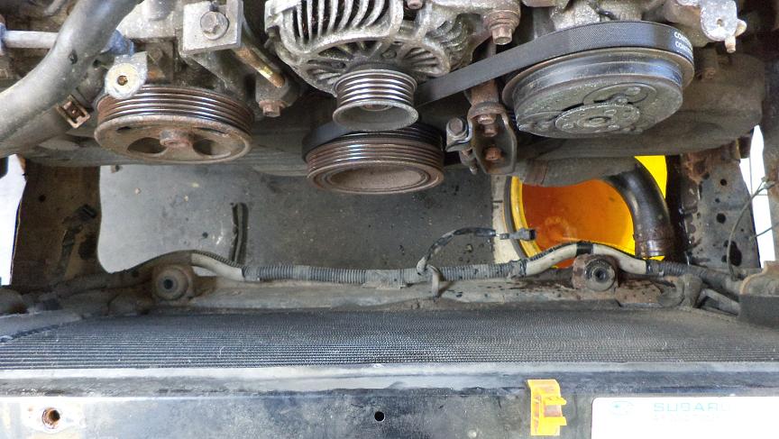 *Odciągamy czynnik z układu klimatyzacji po czym demontujemy chłodnicę klimy *Ściągamy paski osprzętu: są 2 napinacze po 1 dla każdego paska *Następnie bierzemy nasadkę 22 i nakładamy ją na gun'a. - Odkręcamy koło pasowe