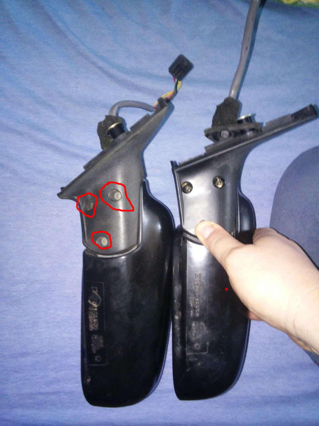 czy wystarczy, że odkręcę (śruby zaznaczone na czerwono) cały korpus (wraz z bebechami) z wersji angielskiej i zamocuję go do trójkąta z wersji europejskiej? czy też coś jeszcze należy zrobić/przełożyć z wnętrza korpusu lusterek?
