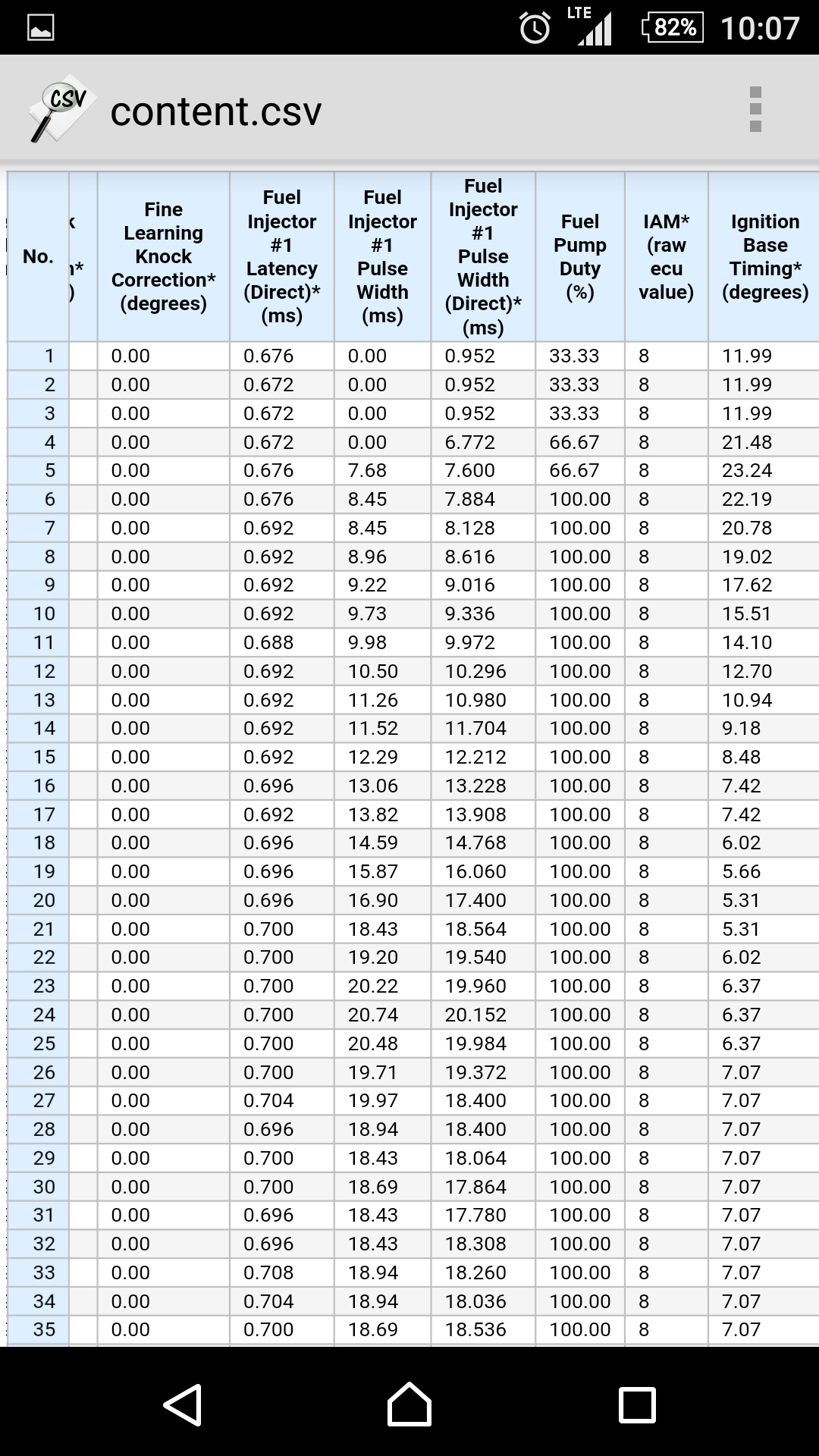 Pacjent Impreza WRX 2001r. Tylny tłumik przelotowy reszta seria. Samochód szarpie podczas przyspieszania oraz ma kosmicznie duże EGT. Do tego stopnia że po dwóch minutach ostrzejszej jazdy kolektor wydechowy, uppipe oraz turbo świeci na czerwono. Odpala bez problemu i na wolnych pracuje równo i cicho. Porobiłem logi romraiderem z których wg mnie wynika, że jest nieprawidłowy kąt wyprzedzenia zapłonu (total ignition timing). Do tej pory zrobione