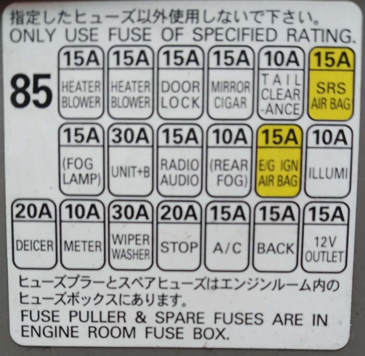 Na pierwszej fotce: 3 od prawej u góry (mirror/cigar) i 3 od prawej w dolnym rzędzie (A/C). Sprawdzamy czy jest napięcie na obu końcach, ma być przy włączonym zapłonie.