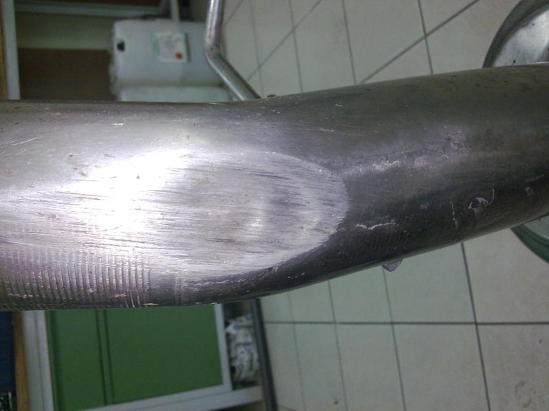 Na rurze przy tłumiku końcowym jest wgniotka ,obtarcie widoczne na foto.