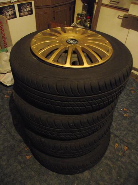 Do sprzedania letnie 185/65/14 Barum Brillantis produkcja 0611,kupiłem nowe do swego szuwarka,który siedział na 14",pojeżdziłem troszkę i wpadły alu 15" ,tak więc oponki są do sprzedania,ale dla chętnych to i z felgami ,a i nawet złotymi kołpakami z logo Subaru:)