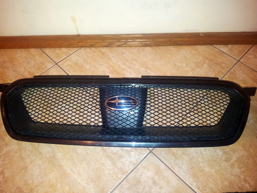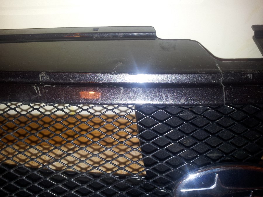 Grill jest używany i posiada na górze pęknięcie (tylko do pewnej wysokości), można to skleić i będzie praktycznie niewidoczne ( ja jeździłem bez klejenia a i tak zauważyłem dopiero przed demontażem :)). Poza tym grill ma wszytskie zaczepy i uchwyty.