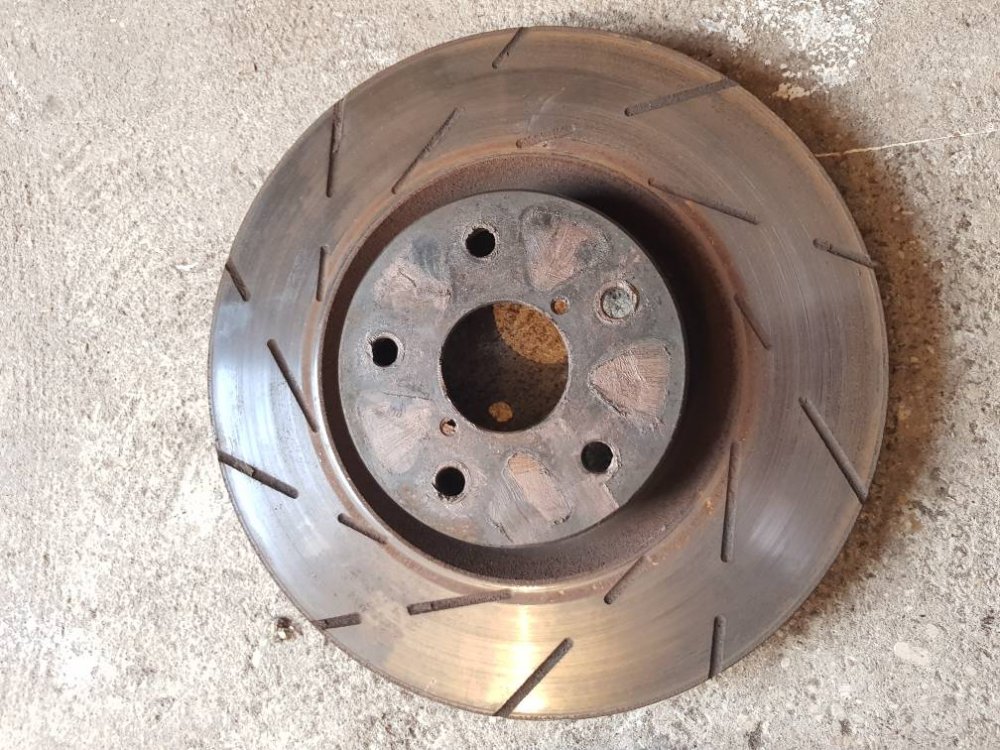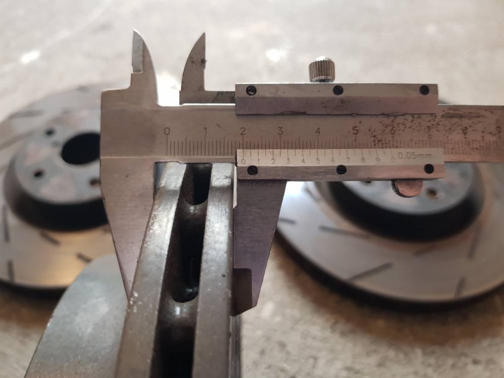 Tarcze hamulcowe przód EBC Ultimax pod zaciski Brembo z STI, rozstaw 5x114,3, jedna 29,8mm, druga 29,9mm czyli ledwie ruszone.