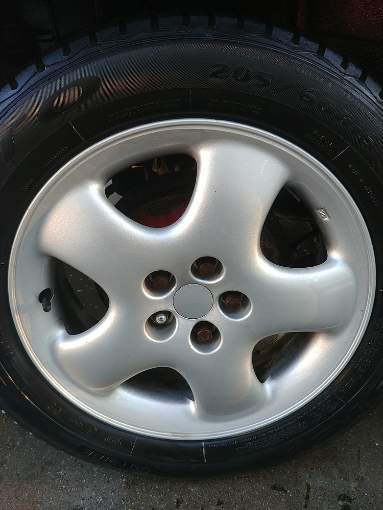 Do sprzedania felgi jak na zdjęciach - nic nie wiem o ich pochodzeniu, kupiłem razem z Forkiem. Są proste, z tego co wiem to nie naprawiane. Na felgach są laczki Dębica Presto 205/60/16/ Wszystkie DOT 0715. Tylko jest ale... Dwie to raczej na dojechanie.  Są trochę wylizane na zewnętrznym bieżniku. Jak kupiłem auto, to wywalone były praktycznie wszystkie tulejki z tyłu, więc nic nie trzymało geometrii. Po wymianie tulejek zamieniłem tył z przodem. I tak sobie przejeździły sezon. W związku z tym umówmy się, że sprzedaję komplet felg z dwoma oponami.