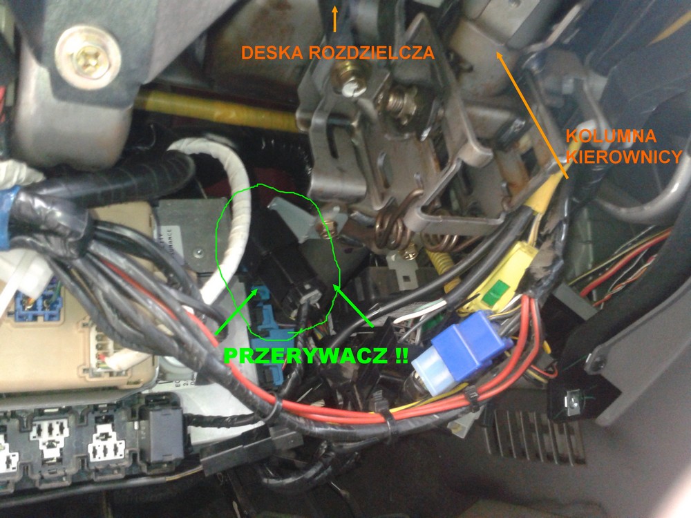 wstawie foty wieczorkiem, bo teraz nie mam przy sobie. Umiejscowienie pod kolumna kierownicy troszkę z prawej strony.