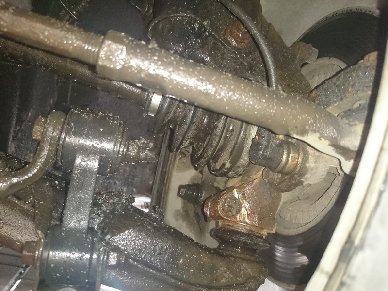 Przekładałem przegub z tyłu do przodu z drugiego Dziada i przy przykręcaniu strzeliła :D Pospawaliśmy i się dotelepał na parking... Czeka na dawcę.