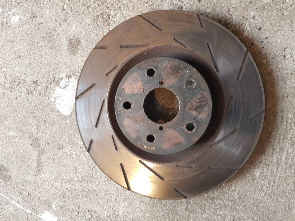 Tarcze hamulcowe przód EBC Ultimax pod zaciski Brembo z STI, rozstaw 5x114,3, jedna 29,8mm, druga 29,9mm czyli ledwie ruszone.