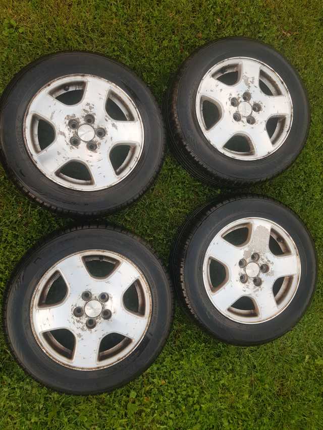 Sprzedam koła z felgami aluminiowymi o rozmiarze 15 ". Felgi ori z Subaru Legacy III. Stan jak na zdjęciach. Opony Nokian iLine 195/60/15, bieżnik 6mm. Cena : 700 zł.