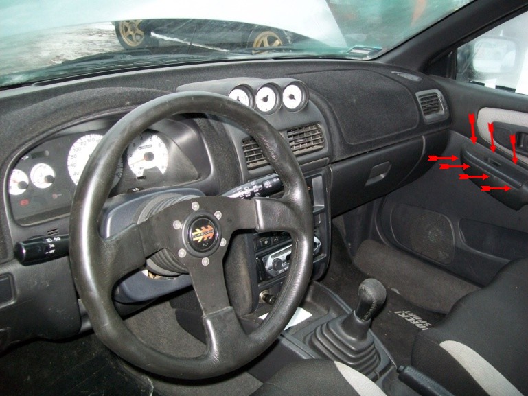 Kupię zaślepkę podnoszenia szyby pasażera (to co na zdjęciu zaznaczone strzałkami) - kolor GT-kowy czarny, deska po faceliftingu 1998-2000.