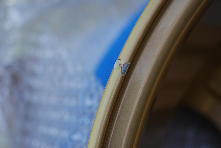 dzisaj felgi pojechaly na wywazenie ,pech chcial pan przy pakowaniu ich spowrotem zachaczyl jedna o sciane ,uszkodzil farbe na tylniej krawedzi