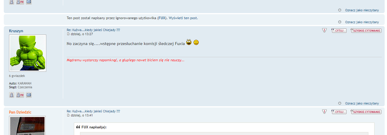 Trzeba uzgodnić, kto mija się z prawdą.Kruszyn pisze:No zaczyna się....wstępne przesłuchanie komisji śledczej Fuxia![]()
