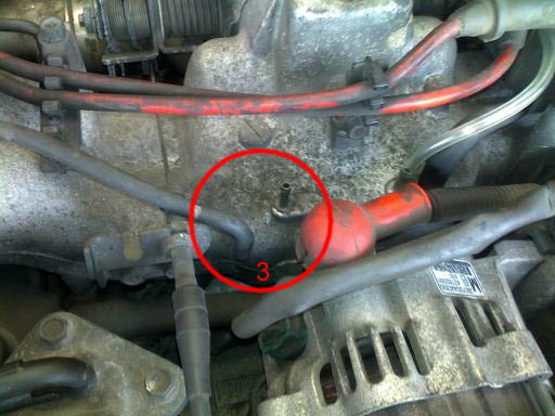 No więc... puszka ma cztery króćce. Jeden z nich jest na jej spodzie. Wychodzący z niej wężyk prowadzi do wnętrza błotnika, w którym to jest już jedynie rezonator. Pozostałe króćce widać na fotce - znaczone numerem 5. Dolny i środkowy króciec łączą się za pomocą wężyków z metalowymi rurkami przy bloku silnika. Jeśli stwierdziłeś, że puszka to "dopalacz oparów" to zapewne jedna z rurek tych prowadzi do zbiornika paliwa. Od strony puszki wydaje mi się, że będzie to króciec środkowy - ten z metalowymi opaskami i białym zaworkiem jednokierunkowym na wężyku. Na koniec interesujący nas ostatni wężyk przy puszcze, czyli górny. Jego drugi koniec trafia w dolot, zaraz za przepływomierz. Po drodze wężyk ten jest rozdzielony czymś (element numer 4) co domyślam się jest sterowanym ciśnieniowo zaworkiem. Tego zaworka przedmuchać, ani pozasysać ustami nie daje rady. Albo pracuje pod wyższym, niż jestem w stanie wyprodukować płucami, ciśnieniem, albo się zatkał. Wężyk skierowany prostopadle na elemencie numer 4 łączy się z trójnikiem (numer 1). Na zdjęciu niebardzo go widać. Prawa strona trójnika połączona jest z króćcem numer 3. Lewa strona prowadzi do jednokierunkowego zaworka, a zaraz za nim są dwa szeregowo podłączone czujniki elektryczne. Jako że na jałowym w obiegu panuje podciśnienie to to co jest za jednokierunkowymi zaworkami w zasadzie nas nie interesuje, bo i tak nic tamtędy nie ma prawa być zasysane. Jak już wspomniałem, najlepsze efekty daje zdjęcie wężyka z króćca numer 3, ewentualnie odpięcie wężyka igielitowego znajdującego się zaraz obok i prowadzącego do wskaźnika doładowania. I jak, jakiś pomysł?