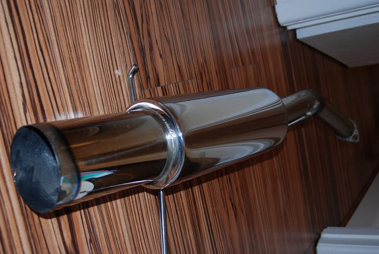Rura na zgieciu zostala delikatnie nagieta,ktore mozna zobaczyc na zdieciu,malo uzywany.Srednica 2.5 cala koncowa boxa 4.5 cala.