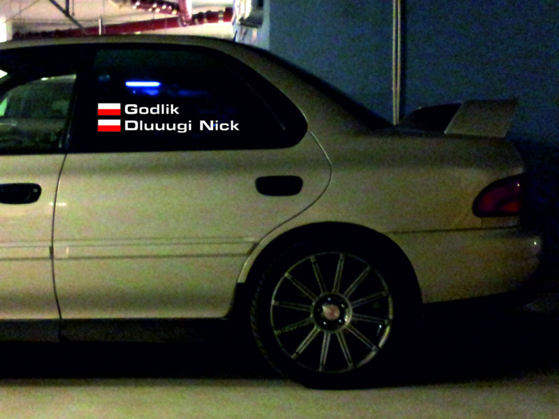 BTW - ja bym musiał na boczną szybę mieć taki napis żeby mi się zmieścił na tą małą szybkę w coupecie. Coś jak w WuRCach: