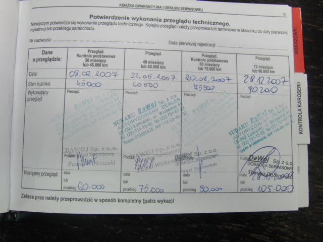 Witam, po przedluzonej przerwie swiateczno-noworocznej, na prosby w mailach, uzupelniam ogloszenie. Data pierwszej rejestracji to lipiec 2006r. Książka serwisowa ze wszystkimi przegladami, ktore odbywały się regularnie, dwa kluczyki. Stan auta uwazam za bdb, poza odpryskiem lakieru, wielkosci paznokcia, na tylnich dzwiach i przetarciem na przednim nadkolu. Niedawno wymienione tarcze i klocki, tez na Prodrive'a, przejechaly ok 5tys.Pod wneka na kolo zapasowe sprytnie zamontowany wysokiej klasy sprzęt audio, a w bagazniku tuba basowa.Do auta dokladam dodatkowo jeszcze: