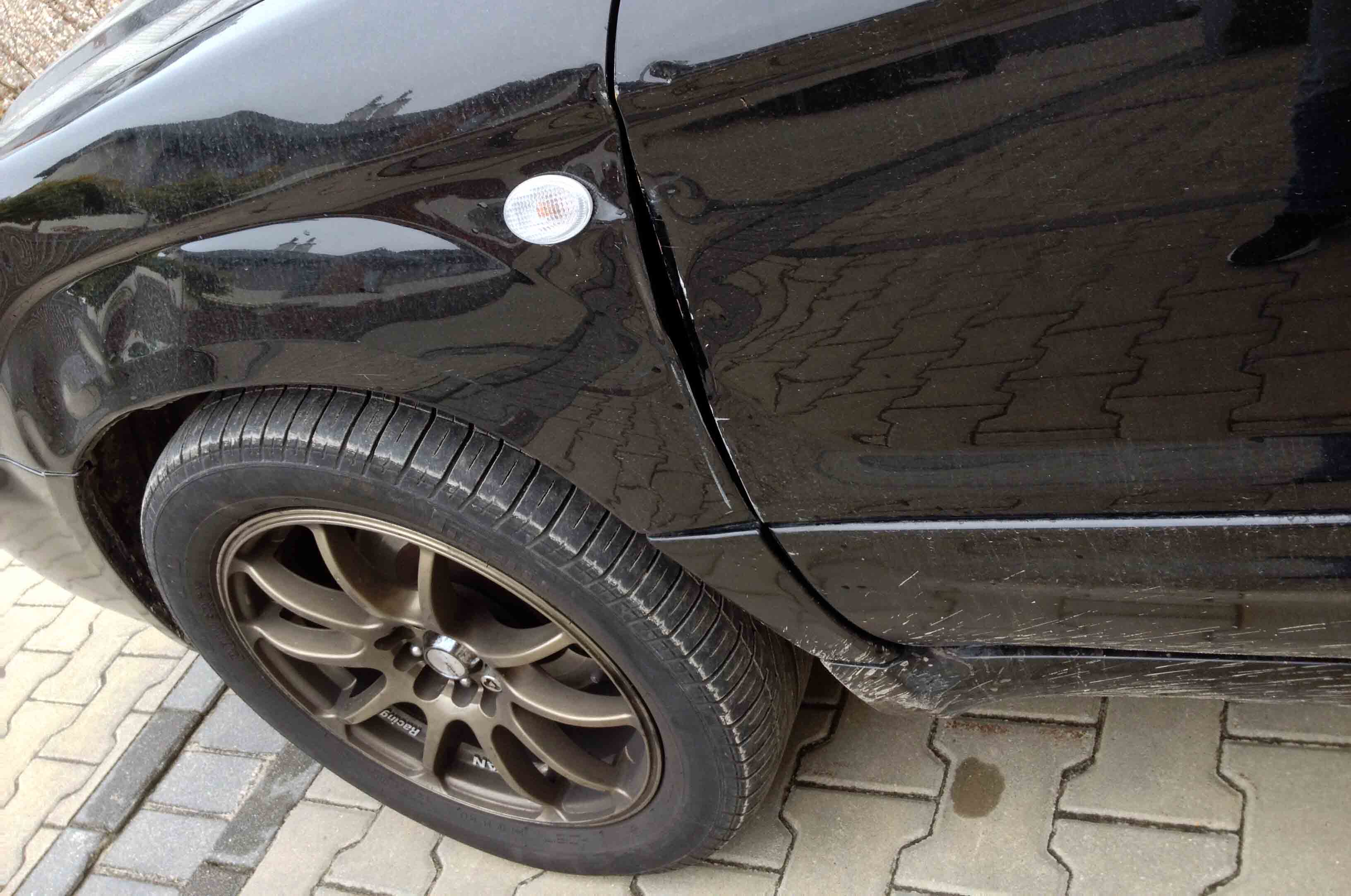 Auto wymaga kosmetyki. Z środku skóra przednich foteli wymaga wyczyszczenia i w miejscu podłokietnika uzupełnienia. Z zewnątrz przedni lewy błotnik najlepiej wymienić, drzwi wystarczy wyprostować. Obydwie czynności mam zamiar sam naprawić, chyba, że wcześniej kupi auto.