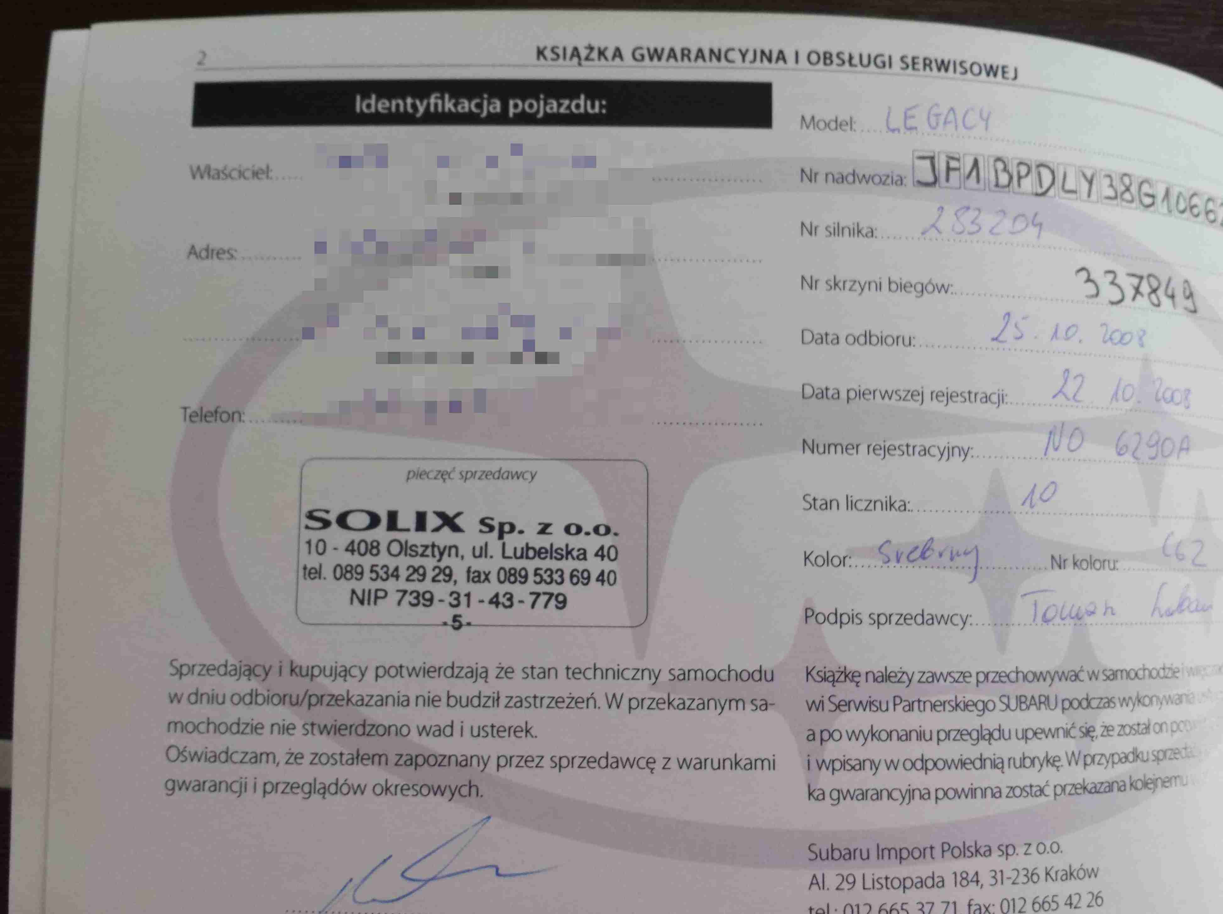 Subaru Legacy Salon Polska od prywatnej osoby, Rocznik 2008