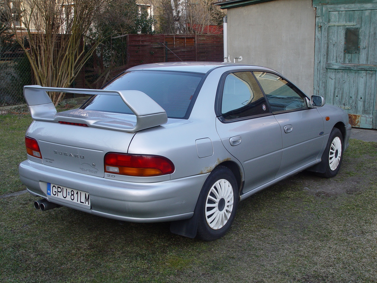 Nadwozie niestety wymaga remontu blacharskiego, inaczej bym nie sprzedawał. Do zrobienia m.in. błotniki przód, progi i tylne nadkola (mam oryginalne subarowe reperaturki tychże, rzecz podobno egzotyczna, nie wiem, na Allegro były), zapewne wnętrza nadkoli i cośtam pewnie można poprawić od spodu (albo i nie, bo mi się esteta włącza jak tam zaglądam). Bąble wokół tylnej szyby. Spoiler i zderzaki nadgryzione zębem czasu takoż. Generalnie bym całego go polakierował, jakbym się decydował na remont, ale ja esteta jestem. I chyba już odpuszczę.
