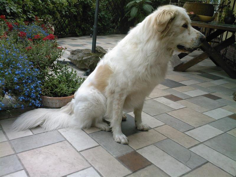 Kaśka wygląda z grubsza jak krzyżówka owczarka podhalańskiego z krową rasy górskiej.