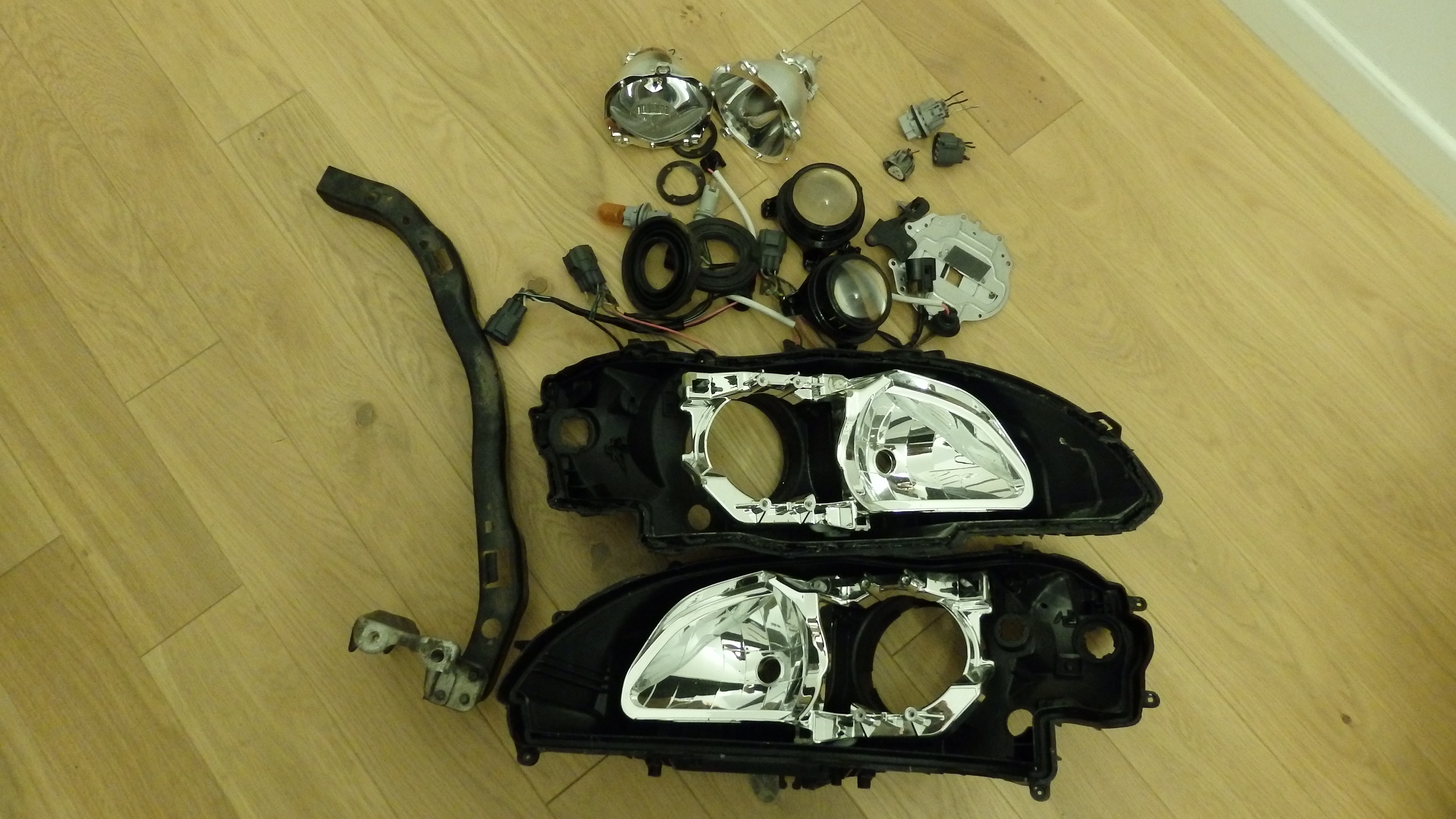 1. Lampa lewa stan bardzo dobry. Świeci "po europejsku" ale jest to US-spec z postojówką i kierunkiem w żarówce dwuwłóknowej. Wszystkie mocowania całe, klosz ładny, odbłyśnik nie wypalony.