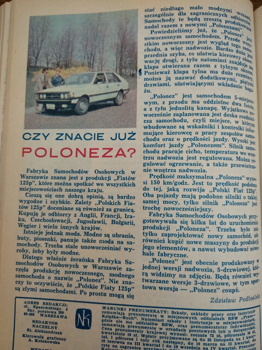 Odkopuję, bo dziś w ulubionej kawiarni znalazłem cały rocznik 1978 Płomyczka i pomijając sentyment, to znalazłem kilka ciekawostek motoryzacyjnych.
