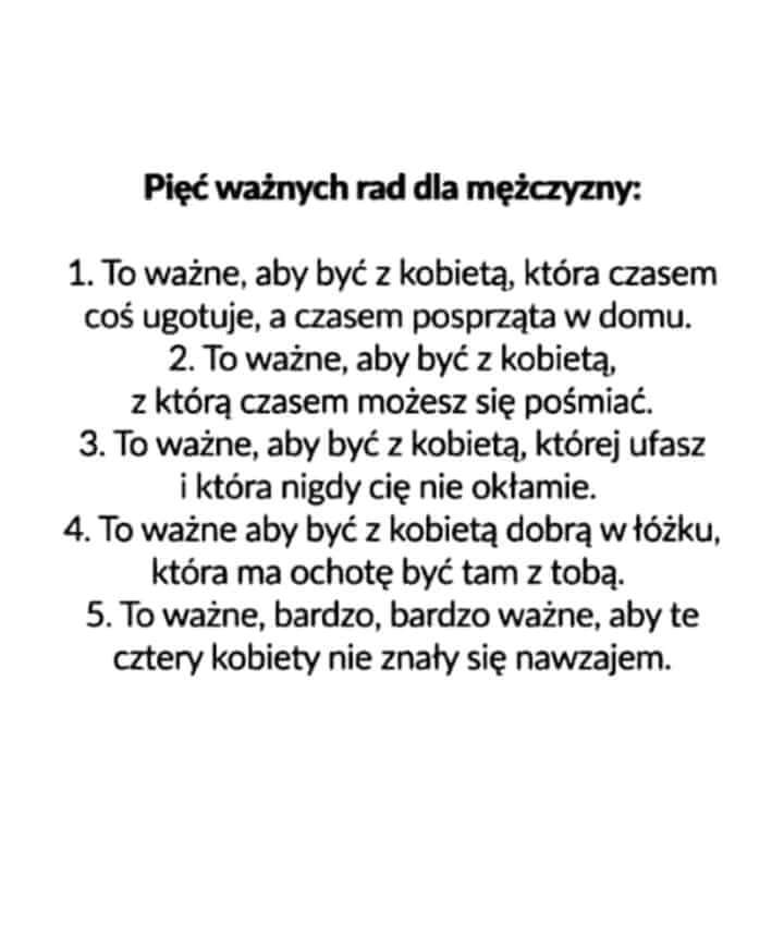 „Zawsze dotrzymuj słowa, nie kupuj rzeczy mielonych, bo pakują do nich również śmiecie, i nie oglądaj genitalnej pornografii, bo nabierzesz wzgardy wobec wszystkich kobiet, także wobec dam”