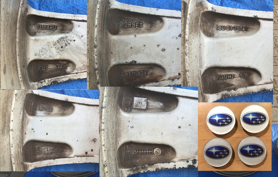 Stan jak widać na zdjęciach - nie pogięte, nie poodzierane, jedna felga była naprawiana (taką już kupiłem - z Outbackiem, rzecz jasna), ogólnie "ślady normalnego użytkowania. W razie pytań lub wątpliwości pytać - lub wątpić. (A poza tym to obyśmy tak zdrowi byli...)