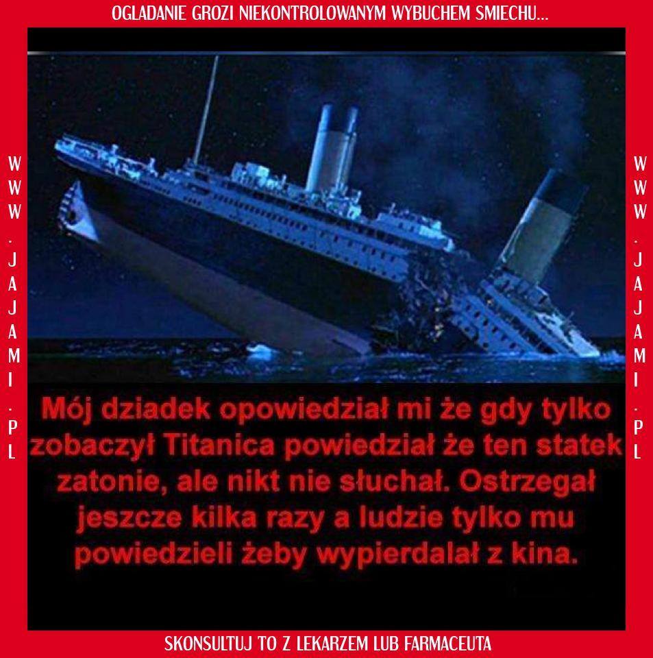 Moja przyjaciólka Żydówka zna najlepsze dowcipy o Żydach, podobnie od znajomego Geja usłyszałem świetne dowcipy o gejach. Ja chętnie opowiadam dowcipy o np. porażkach seksualnych heteroseksualnych mężczyzn - czyli np. o sobie! Miałem T-shirt z napisem "Harmonica Players, suck!" (a gram na harmonijce od ponad 30 lat) i w ogóle się nie obrażam, gdy np. katolicy obrażają moją inteligencję, przekonując do tych wszystkich, wg mnie irracjonalnych baśni, dogmatów i "konieczności" krzewienia tej religii. Nie mam zamiaru się zastanawiać, czy jakiś żart obraża czyjeś uczucia. Zaraz mi ktoś zarzuci, że ten mem o Titanicu, go obraża, bo stracił bliskiego na statku.
