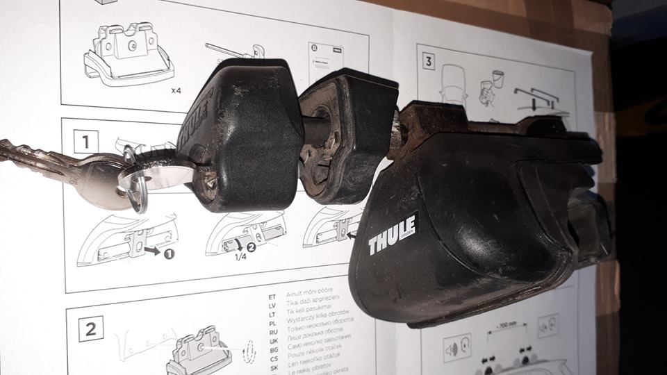 Sprzedam łapy bagażnika bazowego dachowego Thule wraz z adapterami do fabrycznych zintegrowanych relingów Forestera SG oraz do Zaifry II (łapy są te same, różnią się właśnie adapterem dopasowującym do konkretnego kształtu relingu). Bez belek, ale pasują do każdych belek Thule. Ja używałem z najtańszymi belkami stalowymi w czarnej plastikowej osłonie (nowe kosztują 170 zł). Cena to 1/2 ceny nowych w necie czyli 264 zł. W zestawie końcówki (pokrętła) do belek prostokątnych oraz 4 zamki i 1 klucz.