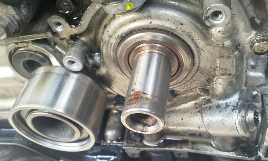 Wyciek z osłony rozrządu, tylko przy pracującym silniku. Po demontażu rozrządu i kola napędu rozrządu taki widok.